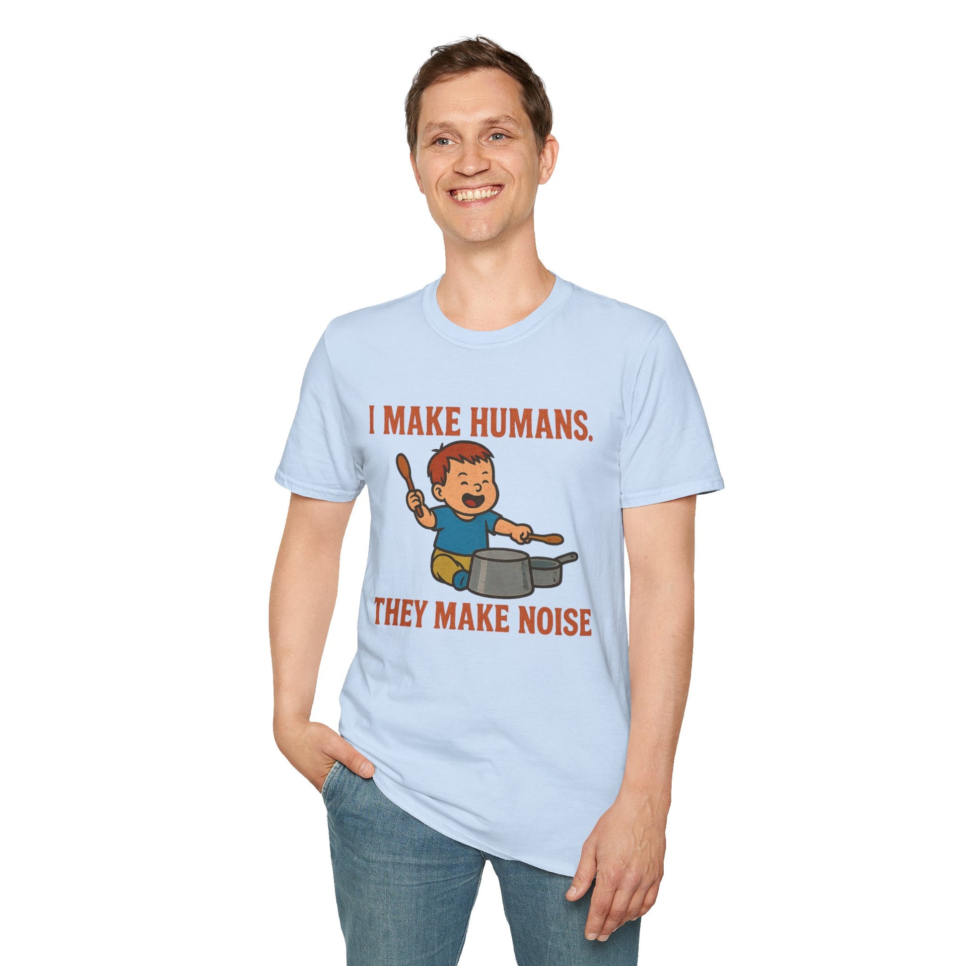 I Make Humans They Make Noise v.III — Worn-in, battle-tested, and built for the parenting trenches. This tee’s got that “seen it all, heard too much” vibe. Perfect for surviving snack negotiations, bedtime stand-offs, and mornings fueled by caffeine and sarcasm. No flex. No effort. Just that lived-in cool you earn from raising tiny chaos machines.