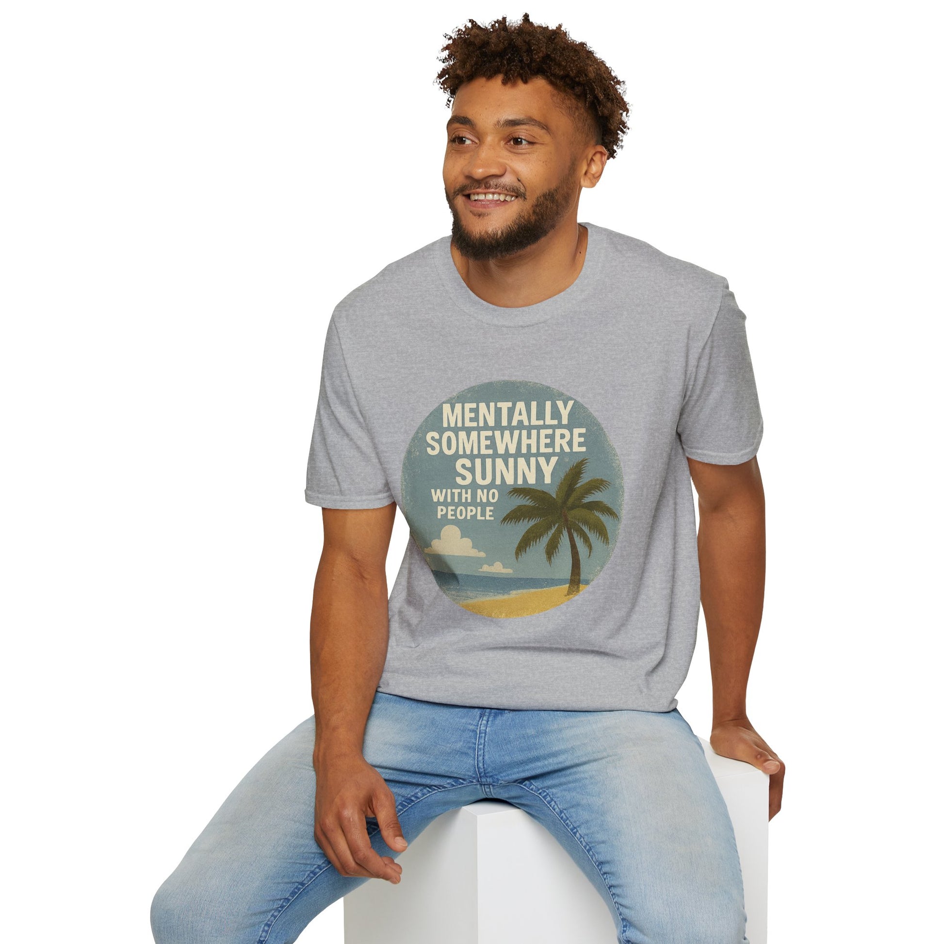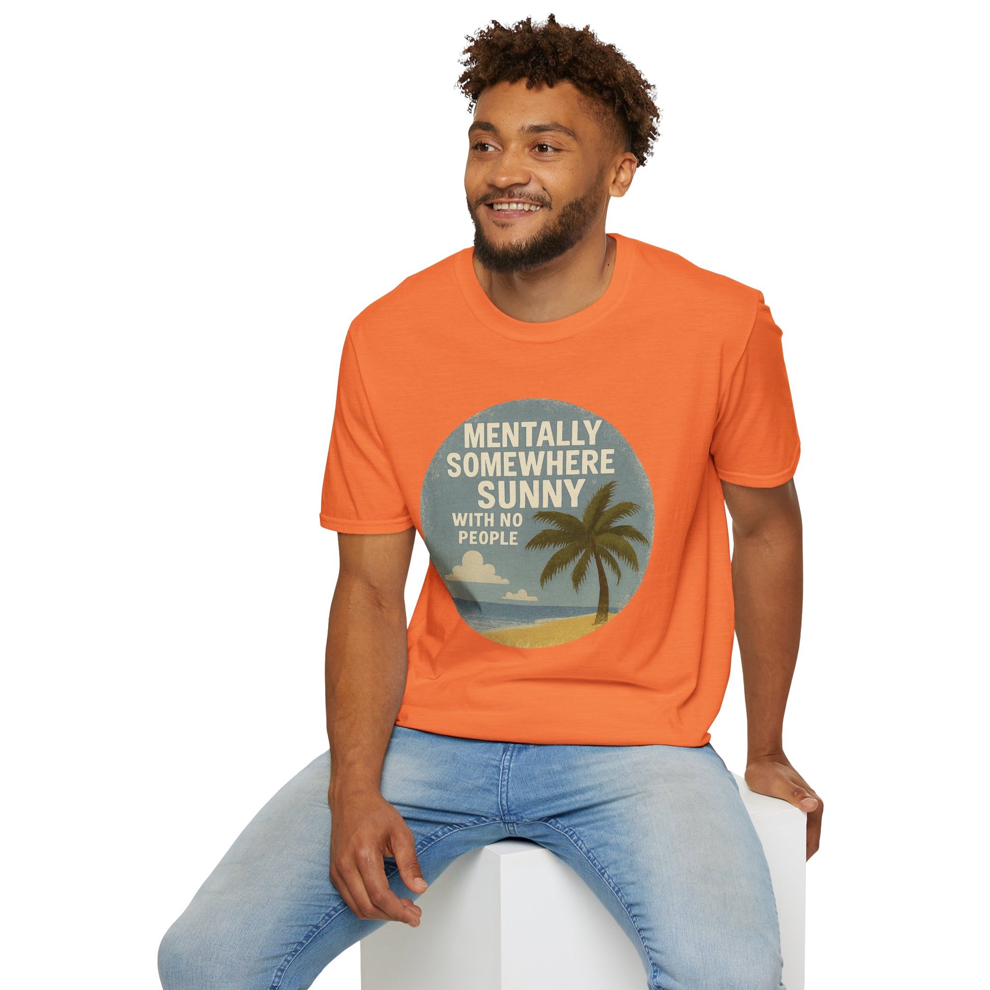 Mentally Somewhere Sunny With No People — Worn-in, checked-out, and not coming back anytime soon. This tee’s got that sunburned, salt-in-your-hair, zero-approval-needed vibe. Built for people who’ve seen enough to know peace means no small talk, no drama, no crowds — just your own quiet takeover. No flex. No effort. Just that faded, can’t-be-bothered cool you can’t fake.