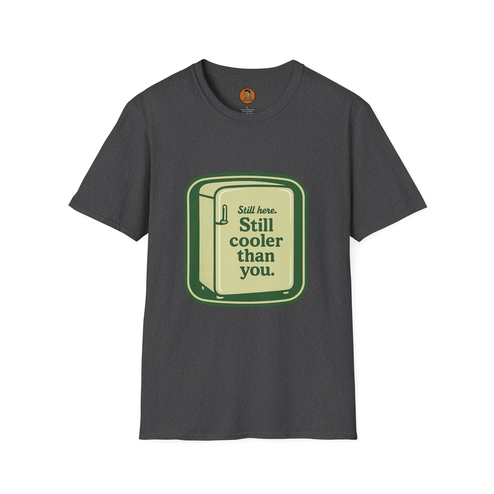 Still Here. Still Cooler Than You. The light, breathable, and perfectly worn-in tee that's built for everyday chaos: bar stools, back alleys, garage jams, and couch-bound recoveries. It’s got that unshakable, low-key confidence that doesn’t need approval, perfect for the ones who’ve seen it all and aren’t impressed. No flex, no effort — just that lived-in cool that can’t be faked.