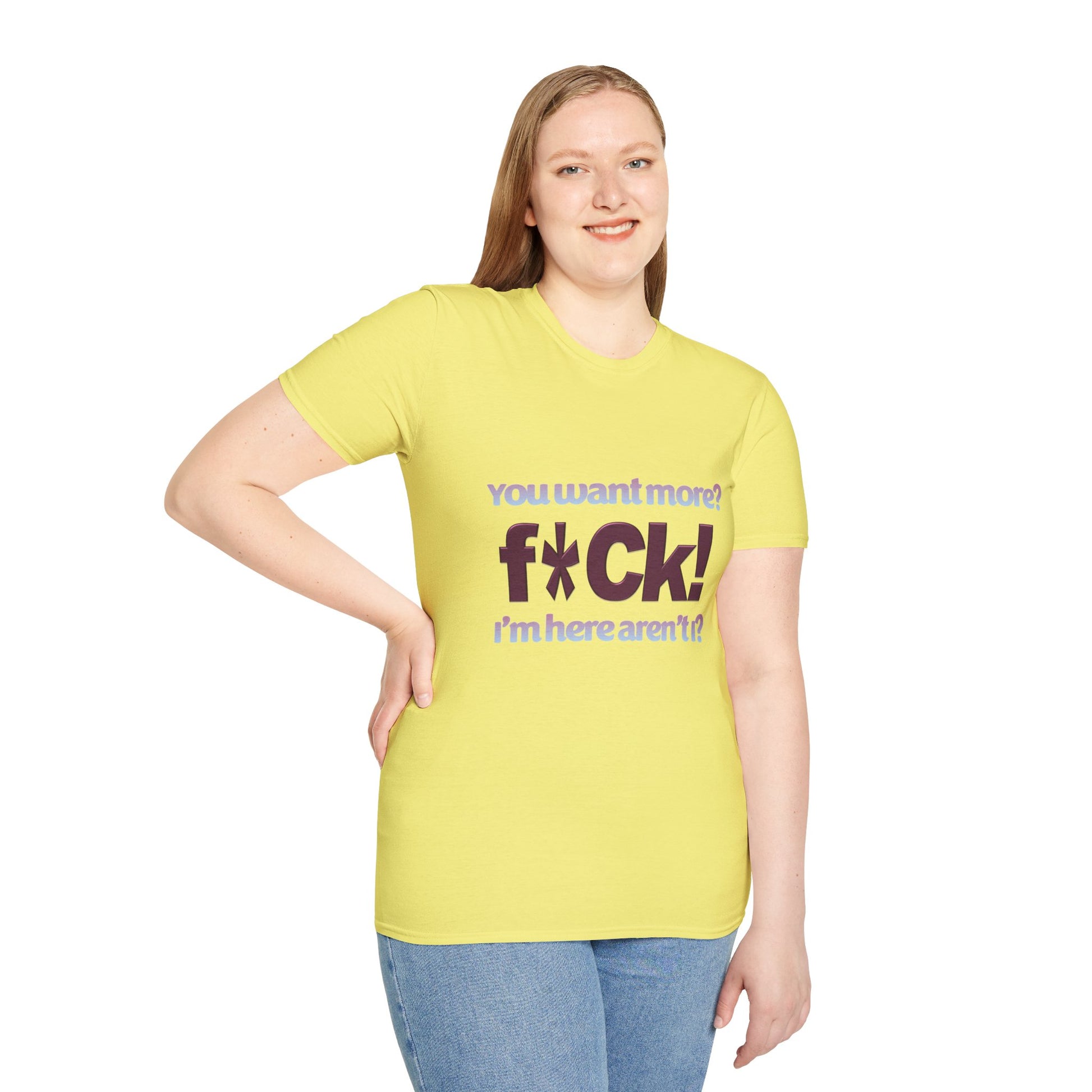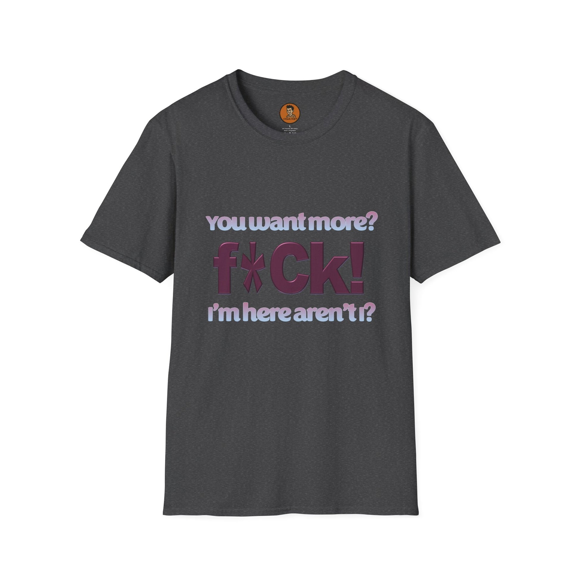 You Want More? F*CK! I'm Here Aren't I? Tee — already chewed up, spit out, and still hanging on like it owns the room. Built for clock-punching, eye-rolling, and shrugging off the noise. No polish, no try-hard shine—just raw, lived-in grit that doesn’t care who’s watching. Worn down enough to prove you’ve shown up, loud enough to say you’re over it.